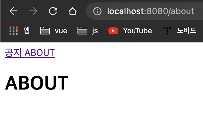 //App.vue <template> <div id="app"> <router-link to="notice"> 공지 </router-link> <router-link to="about"> ABOUT </router-link> <router-view> && </router-view> </div> </template> <script> export default { name: 'App', components: { } } </script>
