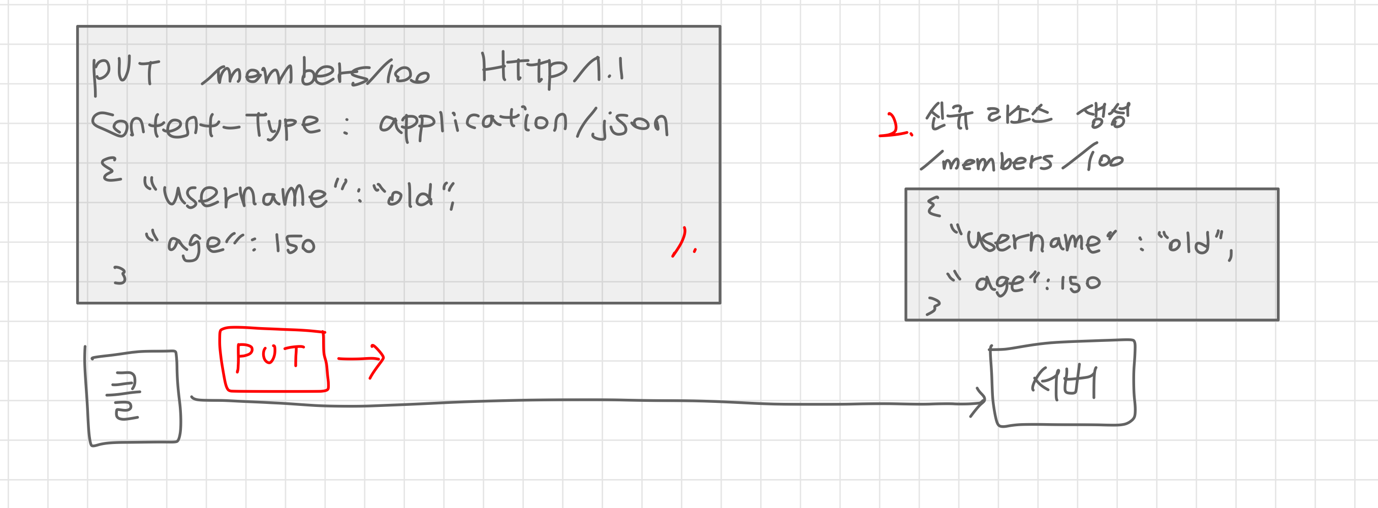 -PUT : 리소스를 대체, 해당 리소스가 없으면 생성