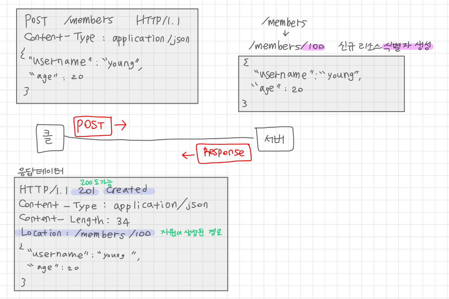-> 이 리소스 URI에 POST 요청이 오면 요청 데이터를 어떻게 처리할지 리소스마다 따로 정해야 함 -> 정해진건 없으