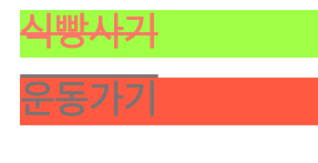 <div class="bread" onclick="toggleA()"> 식빵사기 </div> <div class="workout" onclick="toggleB()"> 운동가기 </div>